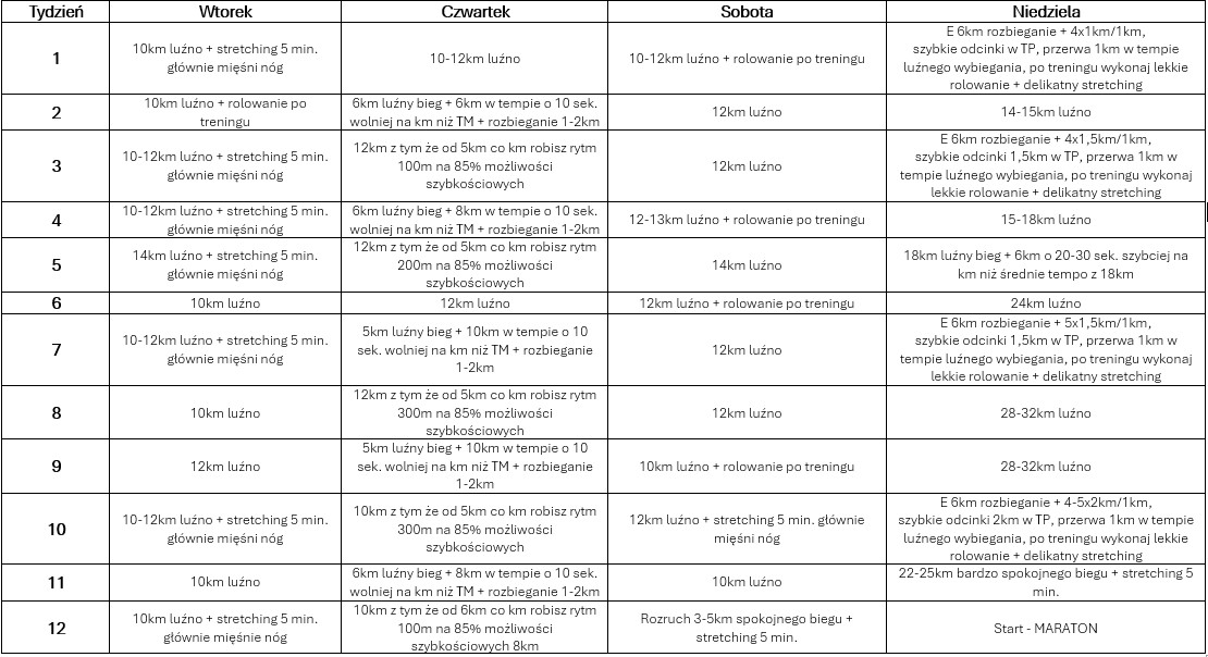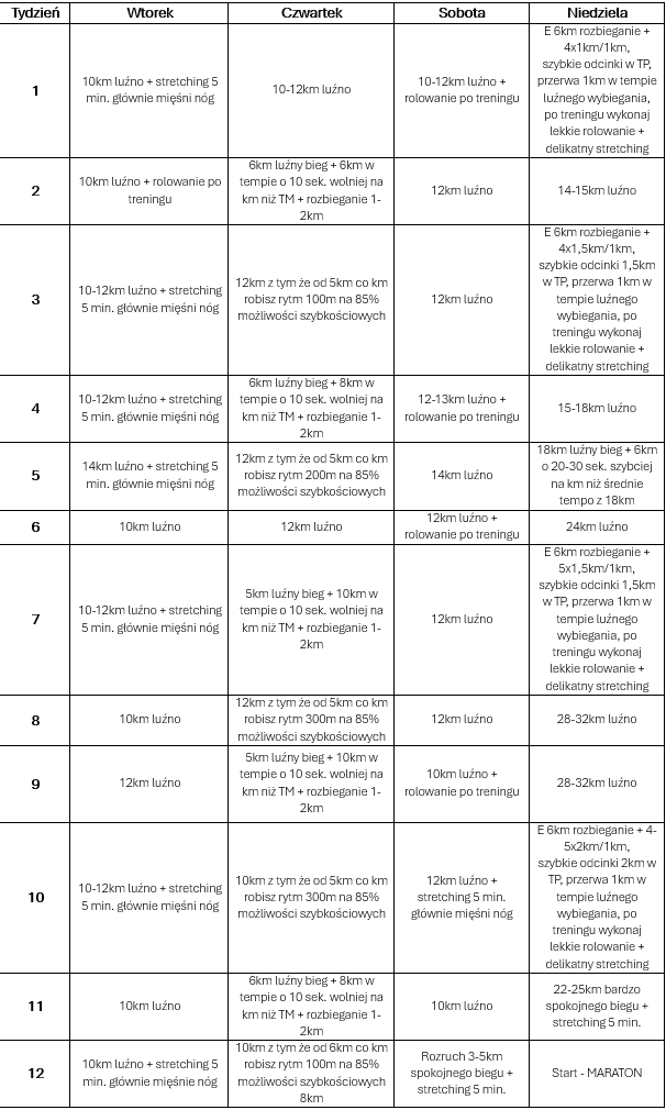Plan treningowy skierowany jest do osób, które są po półmaratonie lub w ciągłym treningu i zadane obciążenia nie wyślą ich na orbitę.